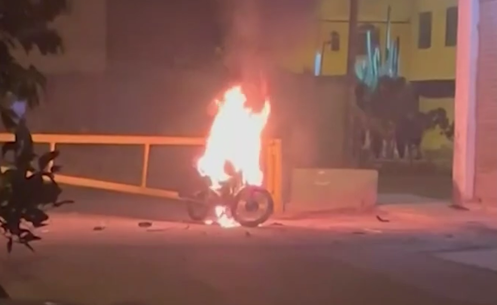 Luego de incautar la motocicleta, los vecinos le rociaron gasolina y luego la incendiaron. Además, los residentes amenazaron con capturar y golpear a los delincuentes que sean sorprendidos robando en esta parte del distrito.