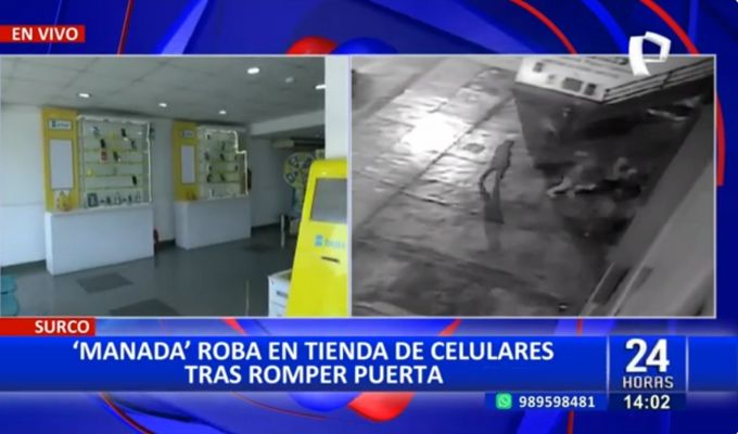 Surco: Delincuentes en "manada" roban en tienda de celulares tras romper la puerta