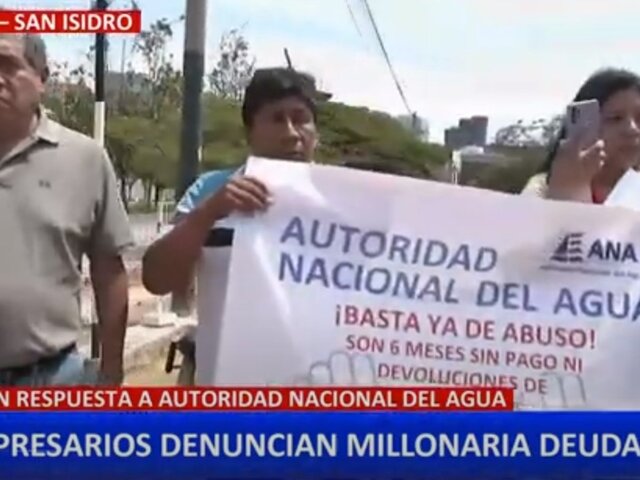 Un grupo de empresarios procedentes de distintas regiones del país se dirigieron a las oficinas de la Autoridad Nacional del Agua (ANA) en el distrito de San Isidro para exigir el pago de una deuda correspondiente a trabajos realizados en la descolmatación de ríos y quebradas durante el fenómeno del Niño en 2023.
