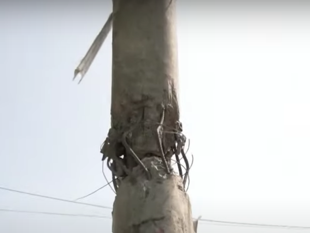 La estructura de cemento está seriamente dañada en la base, por lo que su caída es prácticamente inminente. Ante esta situación, los residentes hicieron un llamado a la empresa para que retiren el poste que solo está sostenido por cables.