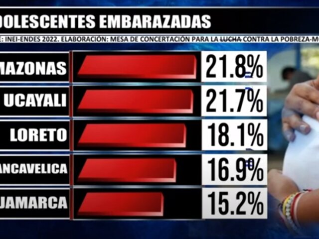 Una encuesta del Instituto Nacional de Estadística e Informática, realizada en 2022, indica que la región de Amazonas registra un 21.8% de adolescentes menores de 14 años embarazadas.