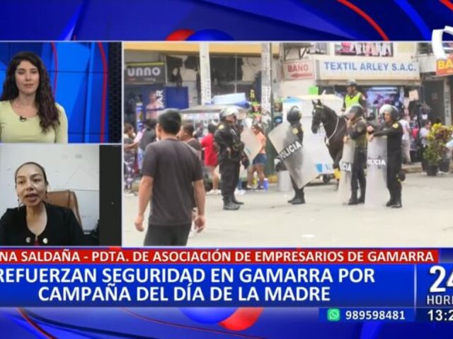 En entrevista para 24 Horas mediodía, la representante de los empresarios de Gamarra destacó el plan de seguridad que han planificado, con el fin de que tanto clientes como comerciantes puedan realizar sus actividades sin temor a ser asaltados en las inmediaciones del emporio comercial.