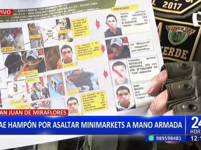 El detenido fue identificado como Cristofer Rosales Miranda, alias "Cris", quien se dedicaba a asaltos a mano armada en los principales minimarkets de la zona.