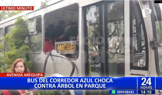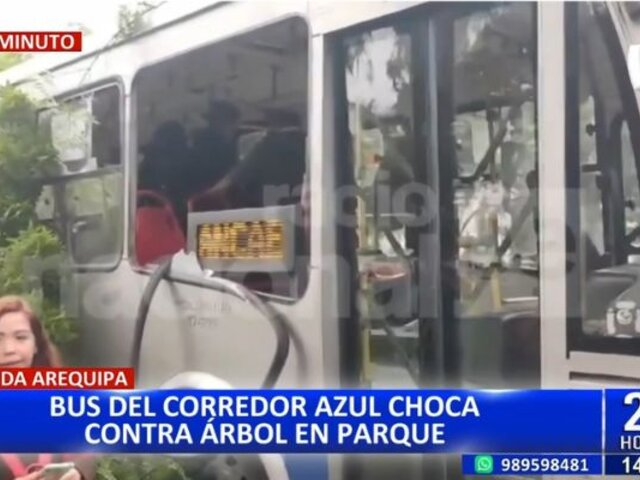Bus del Corredor Azul choca contra árbol de parque en la avenida Arequipa