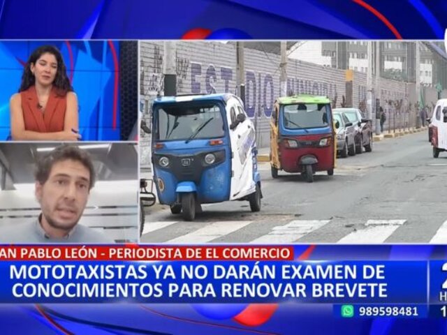 El periodista de El Comercio, Juan Pablo León, se pronunció luego que el Ministerio de Transportes y Comunicaciones (MTC), publicó un polémico decreto supremo que beneficia a los mototaxistas, quienes ya no tendrán que dar examen de conocimiento para renovar sus brevetes.