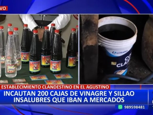 Agentes de la Policía Nacional del Perú (PNP) incautaron cerca de 200 cajas de botellas de vinagre y sillao que fueron embazadas en condiciones completamente insalubres en el distrito de El Agustino y que estaban listas para ser comercializadas.