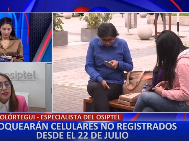Evelyn Olórtegui, especialista del Osiptel, se pronunció respecto al anuncio de la institución sobre el bloqueo de teléfonos móviles no registrados, el cual entrará en vigor a partir del 22 de julio del presente año.