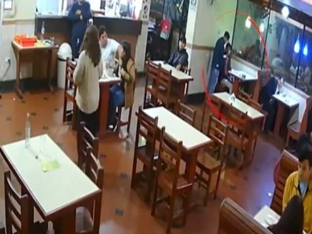 Una cámara de seguridad registró el preciso momento en que delincuentes armados irrumpen en un restaurante ubicado en la avenida Campodónico, en La Victoria, para luego asaltar a los comensales.