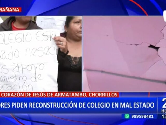 Padres de familia de la institución educativa 7038 Corazón de Jesús de Armatambo, ubicado en el distrito de Chorrillos, alzaron su voz de protesta exigiendo la reconstrucción de dicha casa de estudios, cuya infraestructura se encuentra en mal estado.