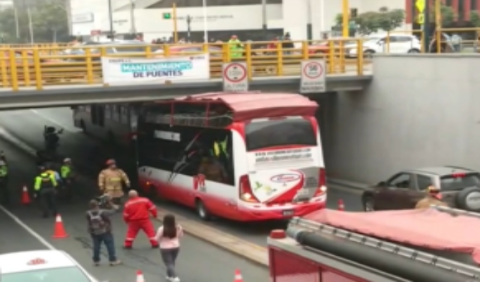 El conductor de la unidad que mide 4 metros intentó pasar por el puente Villarán que solo admite vehículos de 3.20 metros.