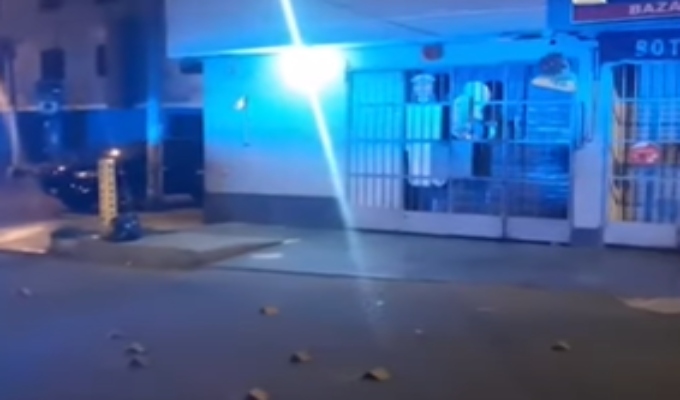 En las imágenes captadas por las cámaras de seguridad, se observa a un hombre estacionar la motocicleta en la que iba a bordo para luego descender, sacar un arma de fuego y disparar contra la bodega hasta 14 veces.