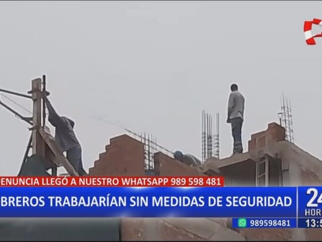 Un grupo de trabajadores de construcción civil fue captado en el sexto piso de una obra, aparentemente sin implementos de seguridad, en la cuadra 2 del jirón Restauración, en el distrito de Breña.