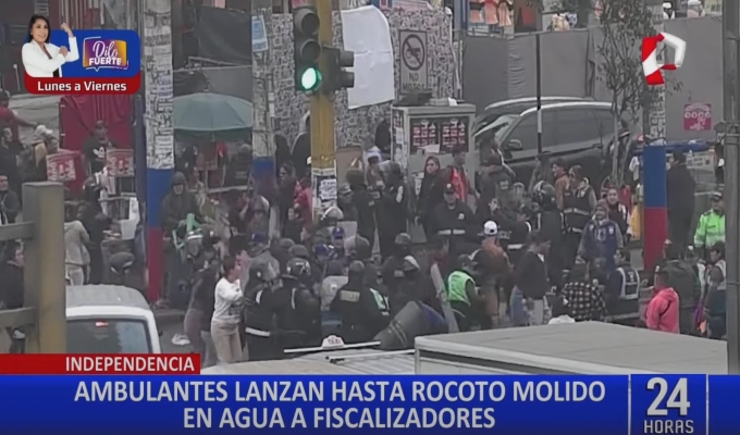 En medio del trabajo de desalojo de la Municipalidad de Independencia, ambulantes se enfrentaron con fierros y hasta rocoto molido contra los fiscalizadores que llegaron hasta la Av. Tomás Valle.
