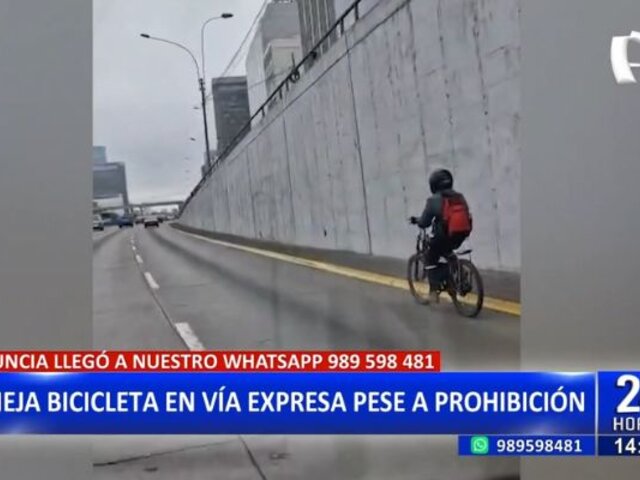 ¡El colmo! captan a ciclista manejando en la Vía Expresa pese a prohibición