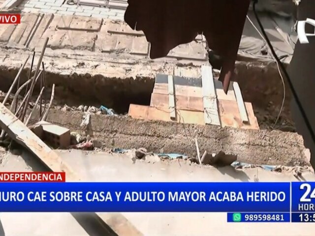 Un adulto mayor resultó herido luego de que bloques de concreto cayeran sobre su vivienda en el distrito de Independencia.