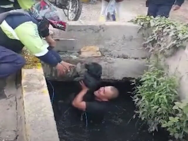 ¡Héroes sin capa! Serenos rescatan a perritos que cayeron a canal de regadío en Chorrillos