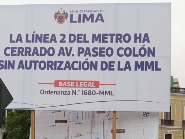 La Municipalidad de Lima vuelve a generar polémica. Esta vez, por la colocación de un cartel que indica que el cierre de la avenida Paseo Colón no tiene autorización municipal, obstaculizando la visión del banner informativo sobre el plan de desvíos.