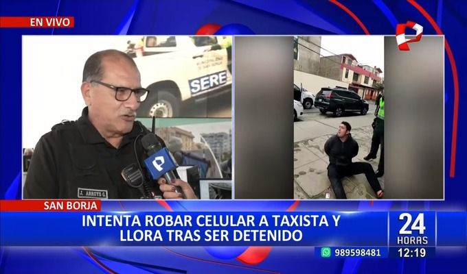 "Esta intervención se dio gracias al plan 'Fiestas Patrias Seguro' impulsado por la comuna municipal. El individuo tomó el taxi y, al llegar a su destino, cometió el robo además de golpear al chofer cuando este se negó a entregarle sus pertenencias", explicó el mayor en retiro Juan Arroyo, vocero de la Gerencia de Seguridad Ciudadana de San Borja.