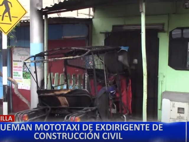 Un exdirigente de construcción civil fue víctima de dos peligrosos delincuentes que incendiaron su mototaxi a las afueras de su vivienda en Ventanilla. El hecho quedó registrado por las cámaras de seguridad de la zona.