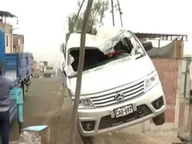 En el asentamiento humano Nueva Esperanza, en Carabayllo, una miniván cayó sobre una vivienda, poniendo en riesgo la vida de tres niños que se encontraban solos en la vivienda. Afortunadamente, los menores lograron salvarse.