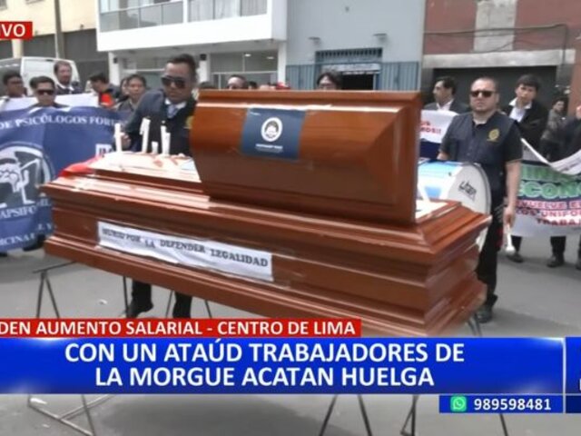 Con un féretro colocado en la puerta de ingreso en la sede central de la Morgue, en el Cercado de Lima, los trabajadores en mención vienen exigiendo mejoras salariales, pues aseguran que la remuneración que perciben es indigna para la labor que realizan.