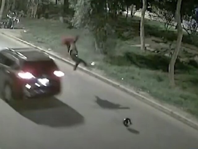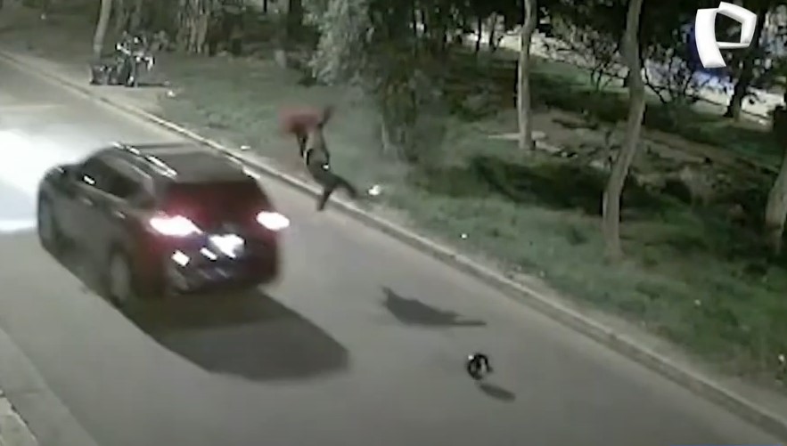 Un joven repartidor de delivery sobrevivió de milagro tras ser atropellado por un automóvil mientras se desplazaba en su motocicleta por la avenida Ferrocarril, en el distrito de Ate.