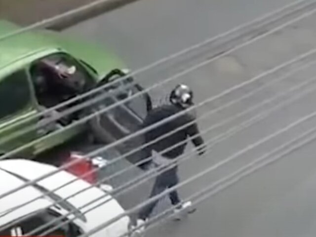 Dos delincuentes descendieron de una moto y asaltaron a un conductor bajo amenazas de disparar. El incidente fue grabado por un testigo.