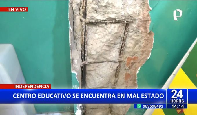 Las cámaras de 24 Horas Mediodía llegaron hasta el referido colegio ubicado en la avenida César Vallejo, donde pudo evidenciar la alarmante situación de las aulas. Justamente, un bloque de concreto terminó desplomándose el día de ayer, muy cerca de donde se encontraba un escolar sentado.