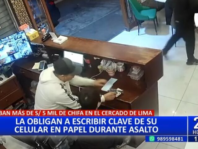 Cercado de Lima: Delincuentes asaltan chifa y obligan a dueña a escribir la clave de su celular