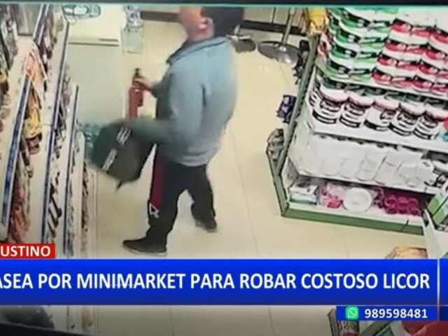 El Agustino: Captan a "tendero" robando costoso licor en minimarket
