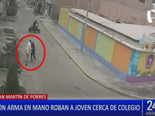 Los casos de robos en la capital no cesan. Esta vez, un hombre que caminaba por los exteriores de un colegio de San Martín de Porres (SMP) fue interceptado por unos delincuentes, quienes se movilizaban a bordo de una motocicleta.