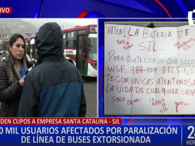 Luego de que hace par de días, extorsionadores a bordo de una motocicleta ejecutaran varios disparos contra un bus de transporte público de la empresa Santa Catalina. Desde la compañía indicaron que paralizarán los trabajos, por temor a que pueda ocasionarse una tragedia.