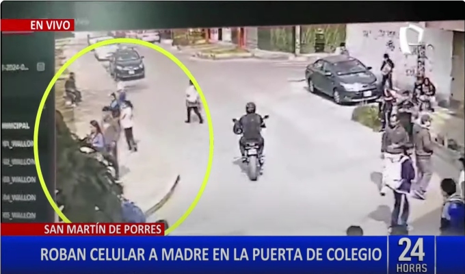 La criminalidad continúa apoderándose de diversos distritos de Lima. Esta vez, delincuentes a bordo de una motocicleta interceptaron a una madre de familia para robarle su celular a las afueras de un colegio de San Martín de Porres (SMP) cuando iba a recoger a su hijo.