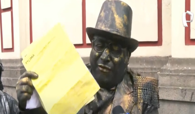 Rigser Ortiz, reconocido artista que da vida a una estatua viviente, expresó su indignación tras ser desalojado del Jirón de la Unión.