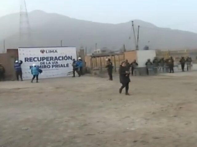 Con la intervención de 500 policías y 600 agentes de la Municipalidad Metropolitana de Lima, se inició la recuperación de un tramo invadido de la avenida Ramiro Prialé, que llevaba años ocupado ilegalmente, como parte del proyecto de ampliación de esta importante vía.