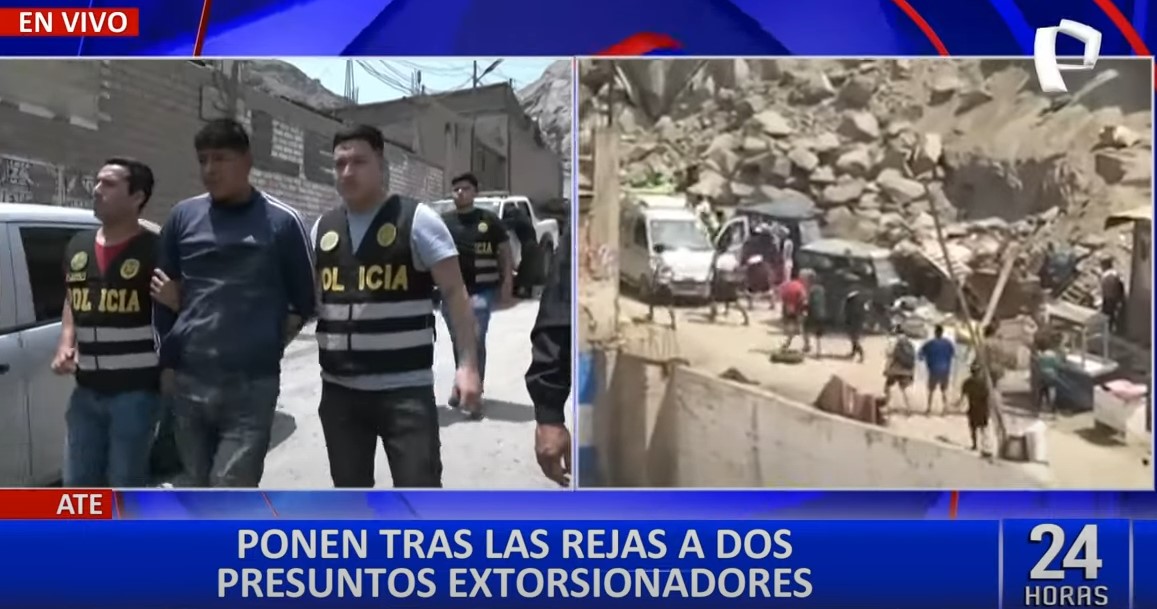 Agentes de la Policía Nacional del Perú (PNP) lograron la captura de dos extorsionadores que exigían el pago de aproximadamente cuatro soles a los residentes de una zona del distrito de Ate para permitirles ingresar a sus propias viviendas de ‘manera segura’.