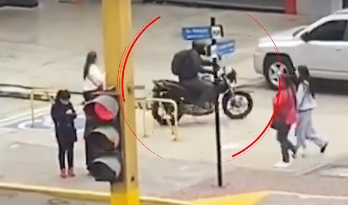 Cámaras de seguridad captaron un reciente asalto a una joven que estaba revisado su teléfono celular en la vía pública cuan un hombre en una moto lineal de arrebata el dispositivo, ante la mirada atónita de varios testigos.