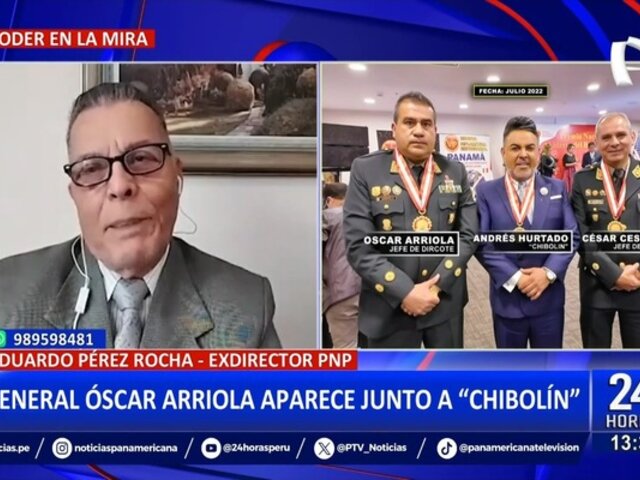 El exdirector de la Policía Nacional del Perú (PNP), Eduardo Pérez Rocha, se pronunció ante la difusión de una fotografía que muestra al general PNP Óscar Arriola, jefe del Estado Mayor de la PNP, junto al expresentador de televisión Andrés Hurtado, conocido como 'Chibolín', en la imagen también aparece el general PNP Carlos Céspedes.