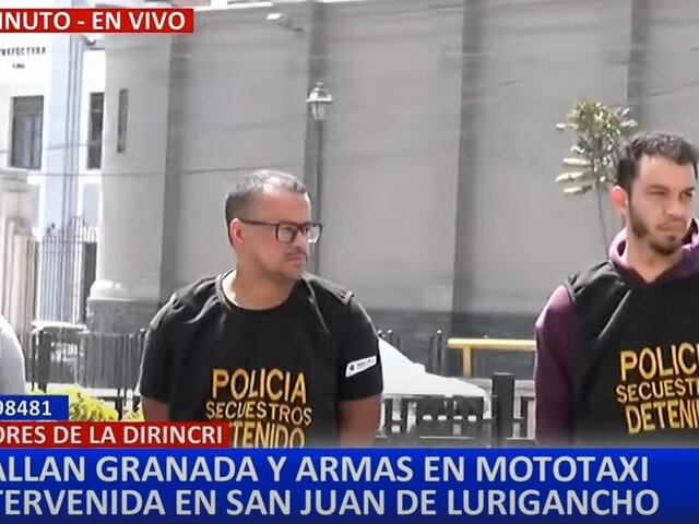 Agentes de la Policía Nacional encontraron una granada de guerra y armas de fuego en una mototaxi durante un operativo en el distrito de San Juan de Lurigancho (SJL), donde se logró la captura de dos personas.