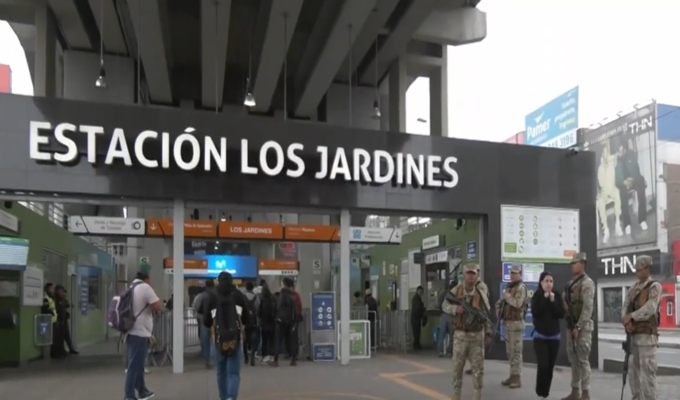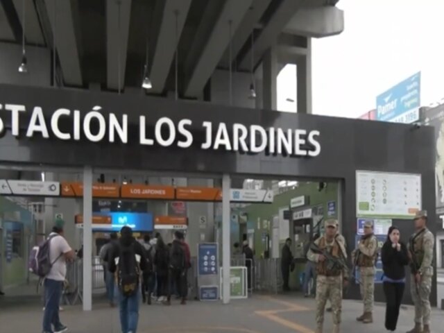 La Estación Los Jardines de la Línea 1 del Metro de Lima, en San Juan de Lurigancho, mostró una afluencia inusualmente baja de usuarios y una notable presencia de fuerzas policiales y militares en el marco del segundo día de paro de transportistas.