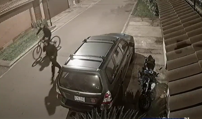 En las grabaciones de las cámaras de seguridad se observa a los dos hombres ingresando a su predio de manera sigilosa, con la finalidad de poder llevarse la unidad de dos ruedas, que era utilizada para crear contenido en las plataformas digitales.