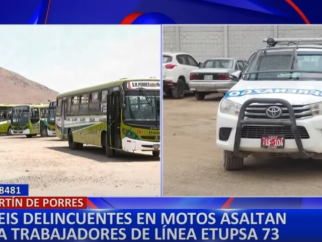 Las empresas de transporte urbano de pasajeros siguen siendo blanco de la delincuencia. Esta vez, el personal de la empresa ETUPSA 73 fue asaltado por seis delincuentes que llegaron al paradero final de la ruta, ubicado en Tayacaja, San Martín de Porres (SMP).