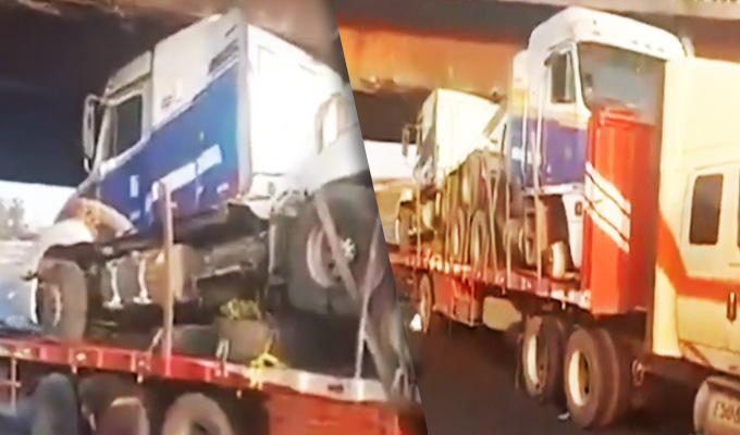 Esta mañana un camión tráiler quedó atascado en el puente Ricardo Palma, en el distrito de El Rímac. Se trata de la misma estructura que el pasado 24 de octubre también fue impactada por un camión que transportaba gran cantidad de botellas de cerveza.