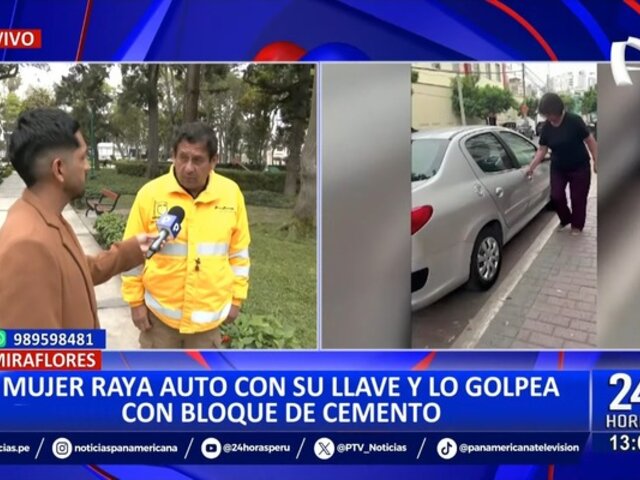 Las imágenes del incidente, que fueron difundidas por Panamericana Televisión, muestran a la mujer golpeando el vehículo con un bloque de concreto y rayándolo con una llave, mientras una testigo grababa la escena.