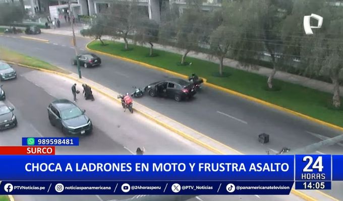 Surco: Conductor choca a ladrones en moto y frustra asalto