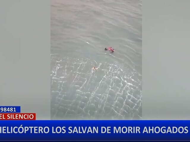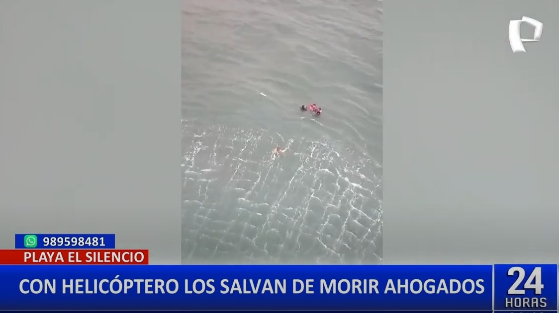 Agentes de la Policía Nacional y rescatistas de la Dirección de Aviación Policial salvaron la vida de dos personas que fueron arrastradas por el mar en la playa El Silencio, al sur de Lima.