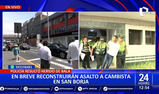 Agentes de la Policía Nacional del Perú (PNP) realizarán este lunes 2 de noviembre, la reconstrucción del asalto a una cambista en el distrito de San Borja, que terminó con un agente policial herido de bala en el rostro, en su intento de frustrar el crimen.