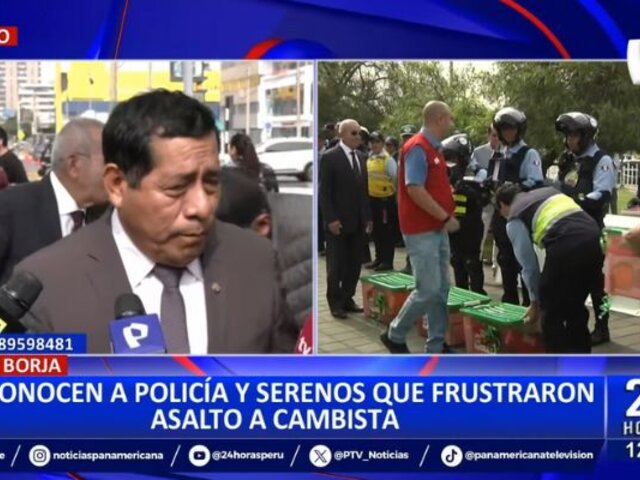 La Municipalidad de San Borja realizó una ceremonia de reconocimiento al policía y serenos que frustraron el asalto a una cambista en el mencionado distrito, y que terminó con el agente policial herido de bala.