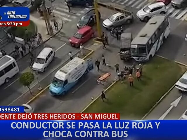 Conductor de combi se pasa la luz roja y ocasiona violento choque en San Miguel