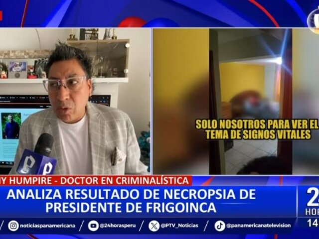 El doctor experto en criminalística, Danny Humpire, se pronunció tras conocerse el resultado de la necropsia de Nilo Burga, presidente de Frigoinca, quien fue hallado sin vida en un hostal del distrito de Magdalena.